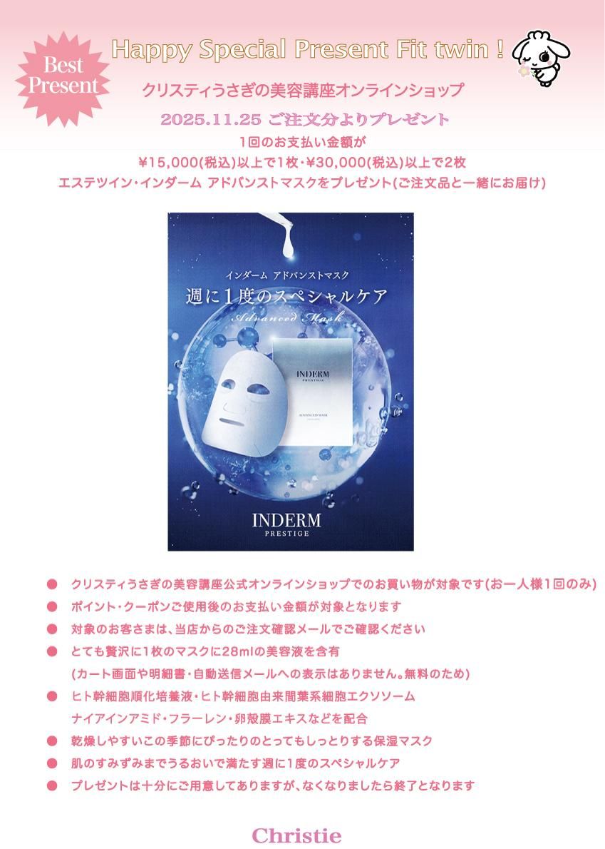 クリスティうさぎの美容講座はOPENして21年。これからもフィットツインユーザー様にお喜びいただける情報を発信していきます。 引き続きお得な キャンペーン開催いたします♪ ![]() |